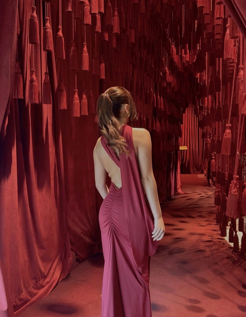 Vestido sienna vinotinto / dos aberturas, escote cruzado