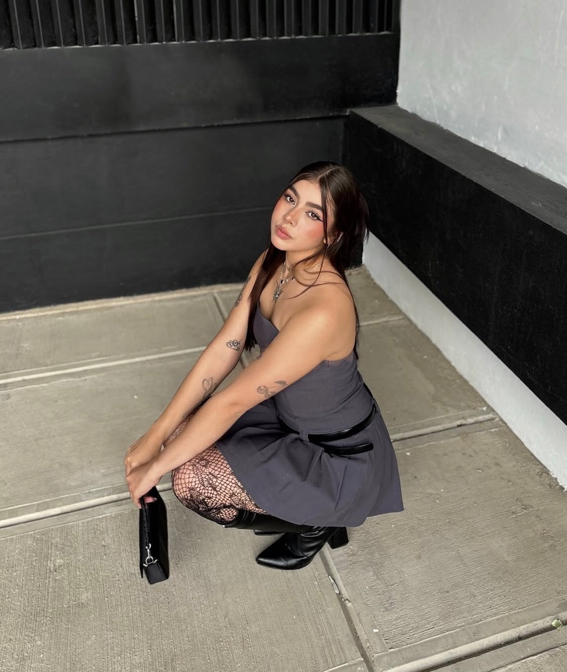 El vestido estraple, confeccionado en drill stretch, es ceñido en la parte del torso, destacando la figura de manera elegante. En la parte superior, cuenta con una cinta que asegura que el vestido no se deslice, manteniéndolo en su lugar. La falda tiene pliegues de prenses que le dan un toque sofisticado, y su diseño incluye shorts debajo para mayor comodidad y libertad de movimiento. No incluye cinturón.