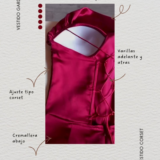 El Vestido Gardy en satín vinotinto combina elegancia y sensualidad. Su diseño tipo corset incluye copas en la parte del busto y varillas que ofrecen un ajuste perfecto, acentuando la figura. En la parte trasera, se ajusta al cuerpo, mientras que la falda presenta una cremallera invisible para mayor comodidad. Con detalles de prenses en la cadera y una abertura en la pierna, este vestido resalta y da forma a la silueta, siendo ideal para eventos especiales.